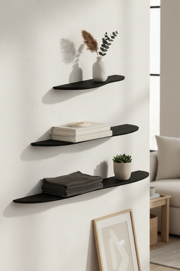 Shelving maximises space, preventing clutter from piling up while also putting treasured items on display .use wave shelves besides the bed,and as a decorative element in the living room, and display colorful spices in the kitchen or maybe as the extra shelf holding the back up light in the kids’ room.
