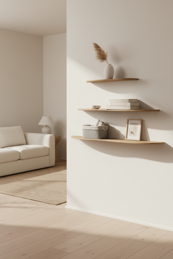 Shelving maximises space, preventing clutter from piling up while also putting treasured items on display .use wave shelves besides the bed,and as a decorative element in the living room, and display colorful spices in the kitchen or maybe as the extra shelf holding the back up light in the kids’ room.